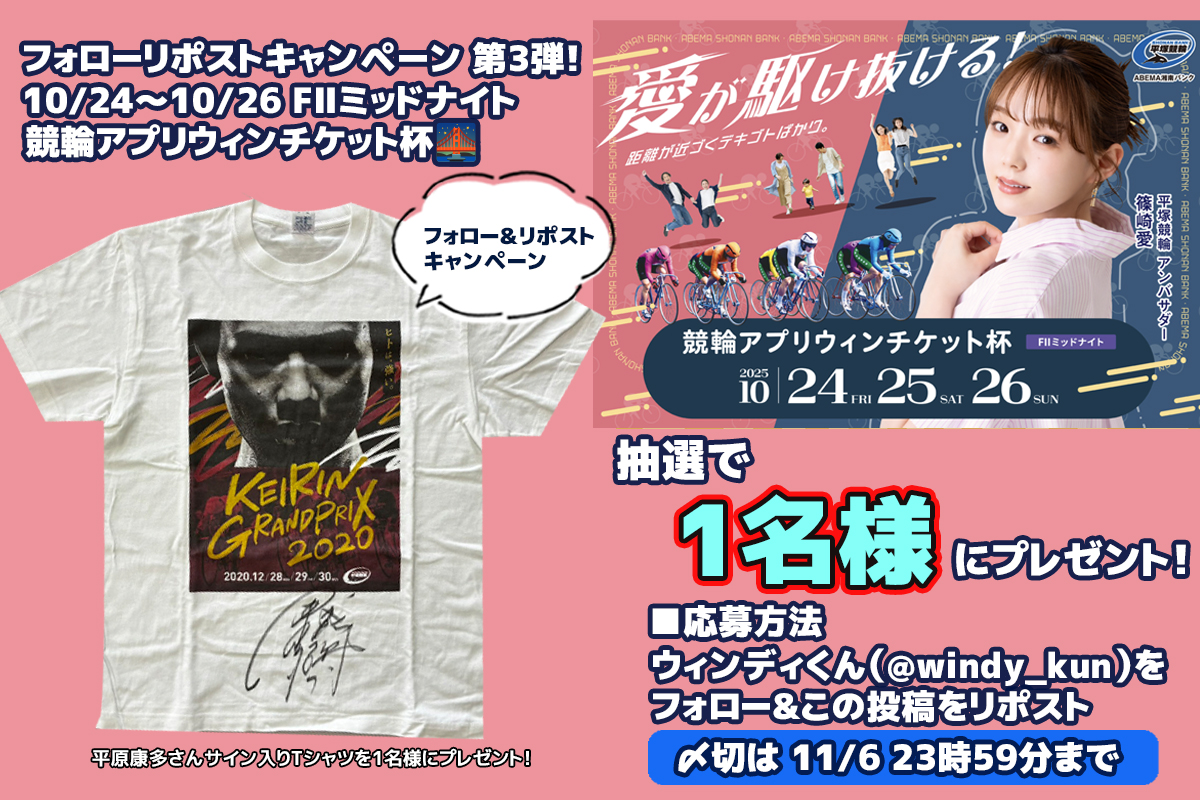 KEIRINグランプリ2020 #平原康多 さんサイン入りTシャツを1️⃣名様にプレゼント🎁✨ 締切