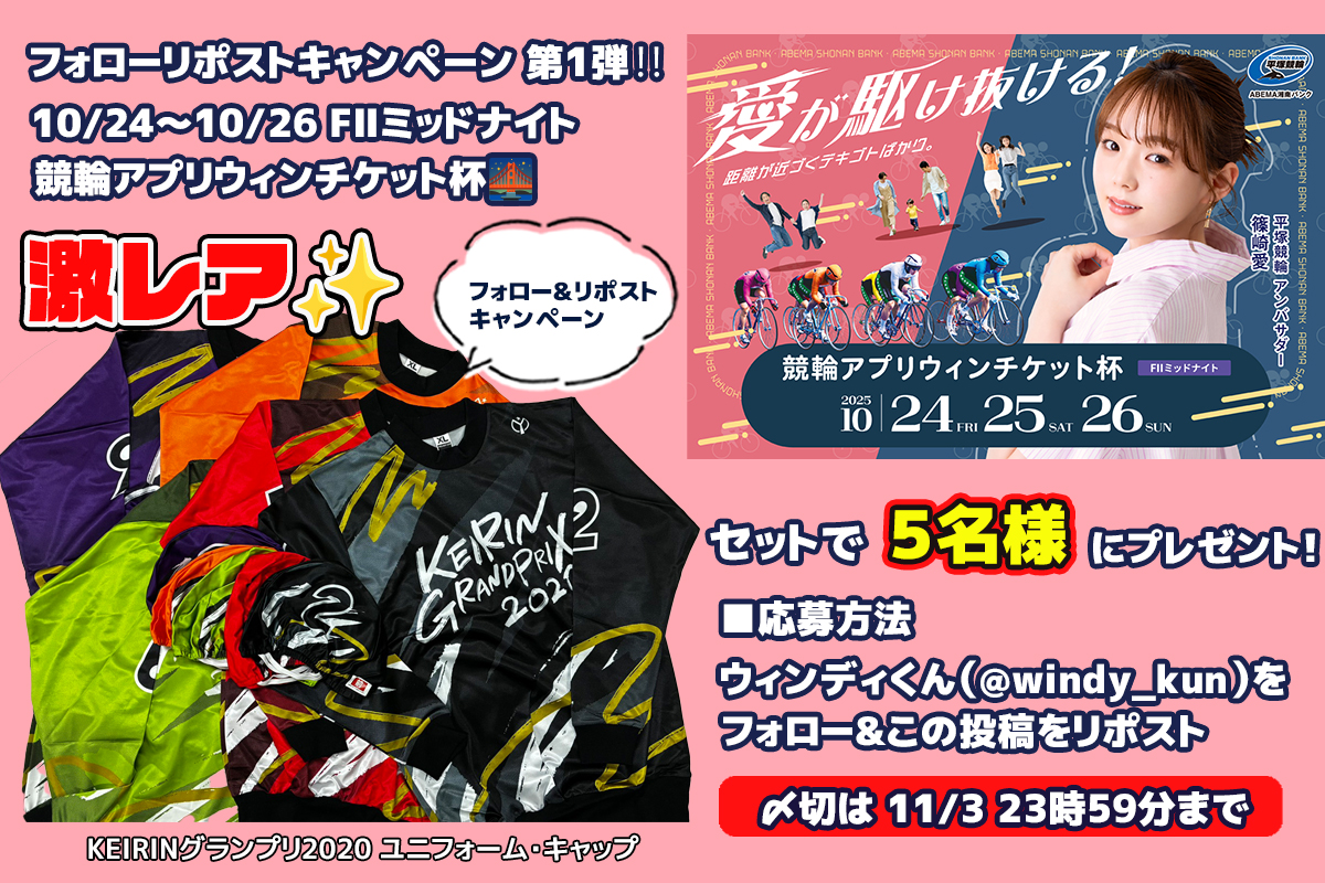 🔥KEIRINグランプリ2025🔥競輪祭GⅠ優勝で初のGⅠ優勝を決めた『阿部拓真』選手の直筆サイン入りグッズが1️⃣名に当たる‼️ 開催中