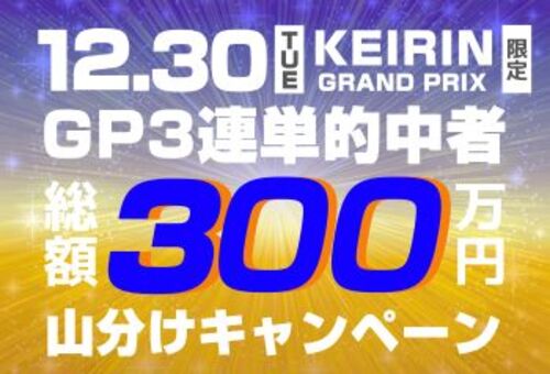 【12月30日限定】総額300万円!GP3連単的中者山分けキャンペーン! 締切