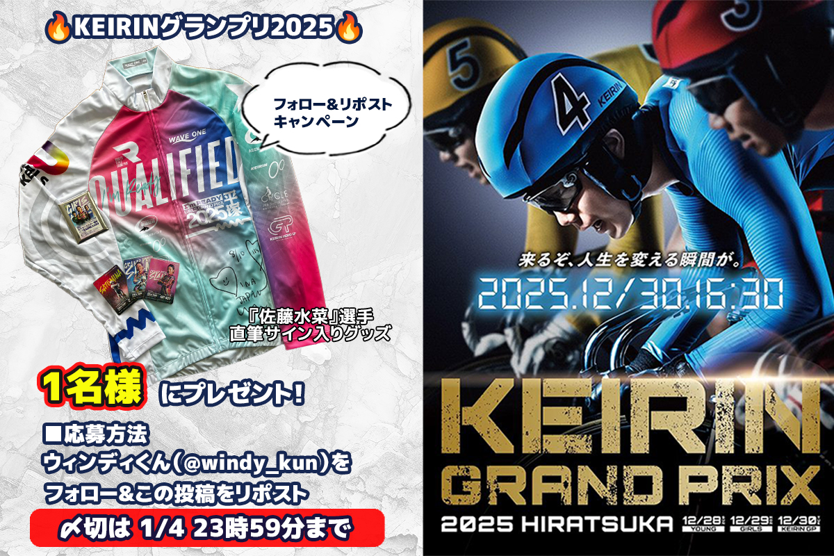 🔥KEIRINグランプリ2025🔥競輪祭女子王座戦GⅠ優勝で今期全てGⅠ優勝となった『佐藤水菜』選手の直筆サイン入りグッズが1️⃣名に当たる‼️ 開催中