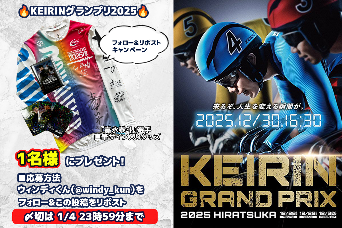 🔥KEIRINグランプリ2025🔥寛仁親王牌GⅠ優勝で初のGⅠ優勝を決めた『嘉永泰斗』選手の直筆サイン入りグッズが1️⃣名に当たる‼️ 開催中