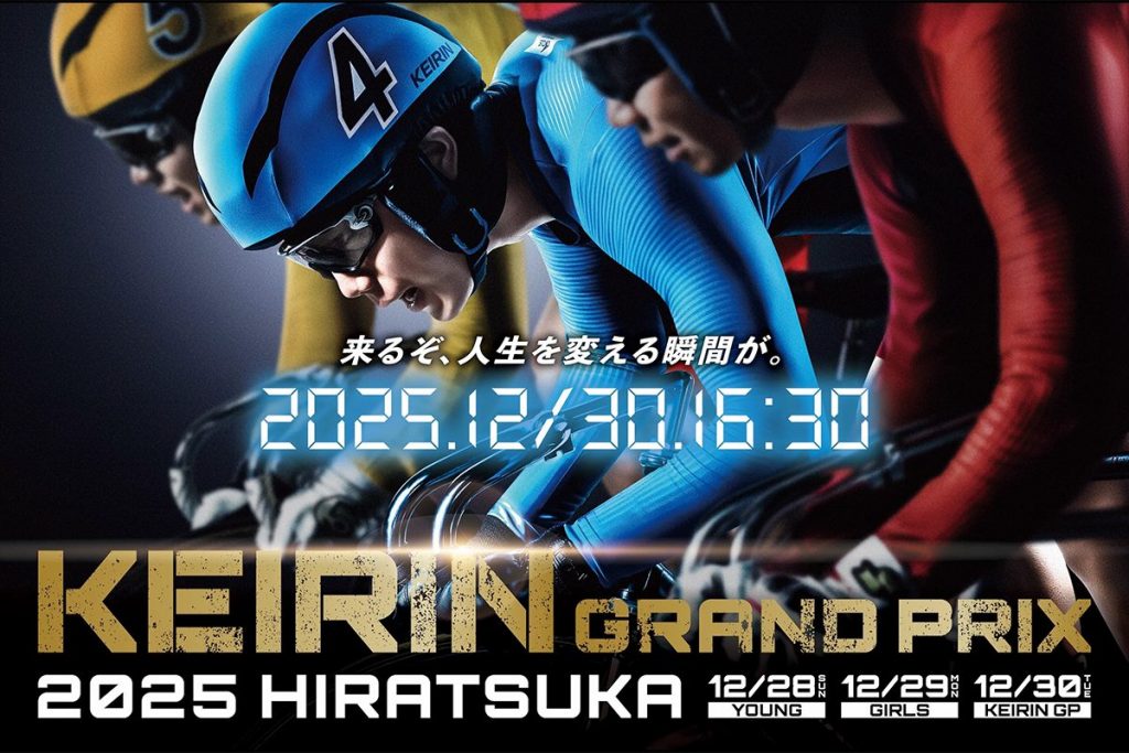 KEIRINグランプリ2025のメインビジュアルを公開しました。 12月28日(日)~12月30日(火)まで、平塚競輪場で開催される「KEIRINグランプリシリーズ2025」。メインビジュアルを公開しました。『来るぞ、人生を変える瞬間が。』